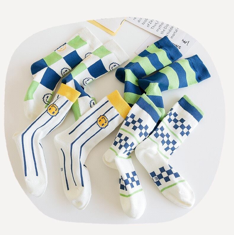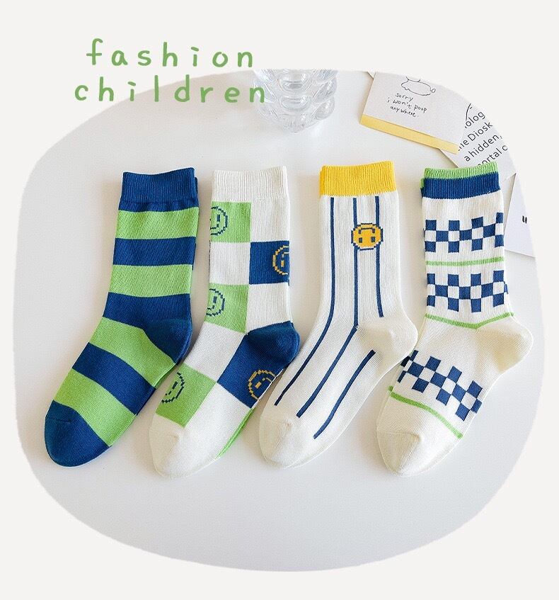 ENDO SOCKS 新商品ボーダー&チェッカー&ニッコリマーク子供靴下4足組