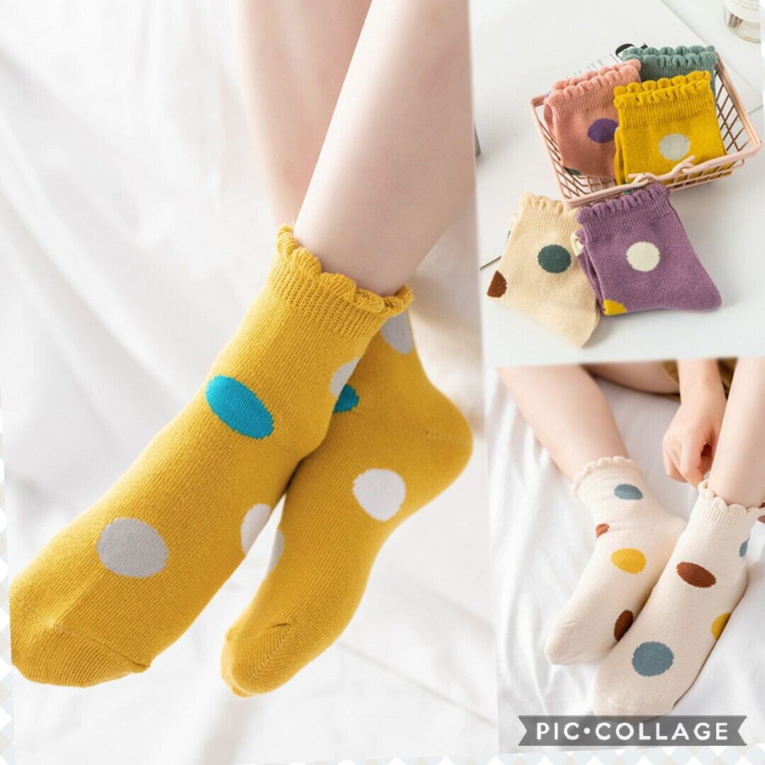足首波デザイン 大きいドット模様の可愛い子供靴下5足セット